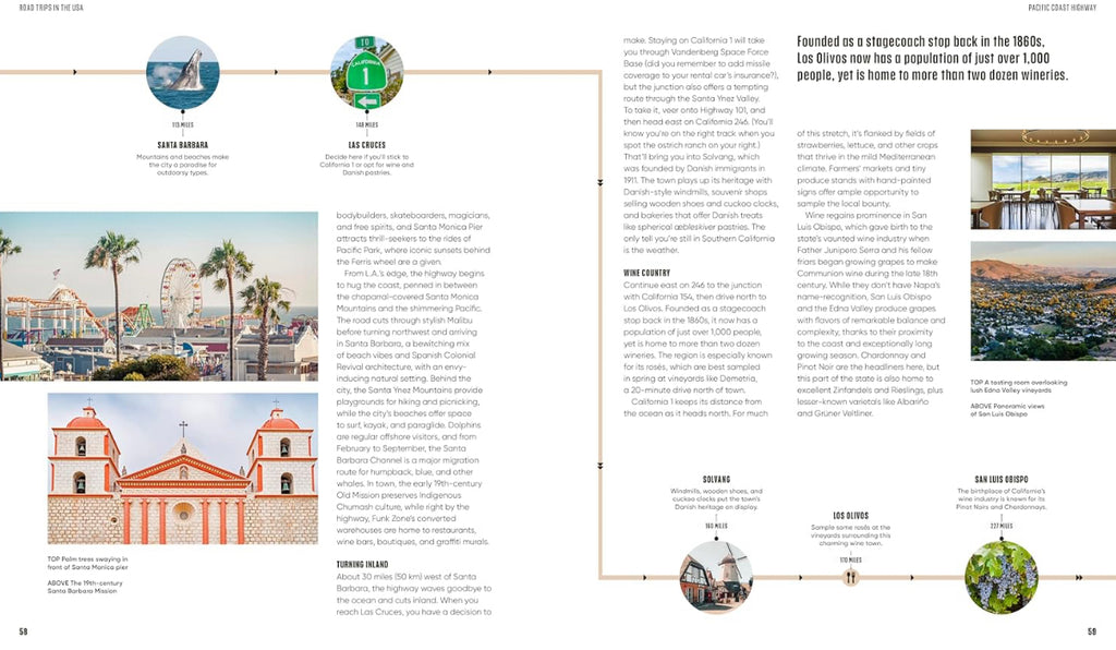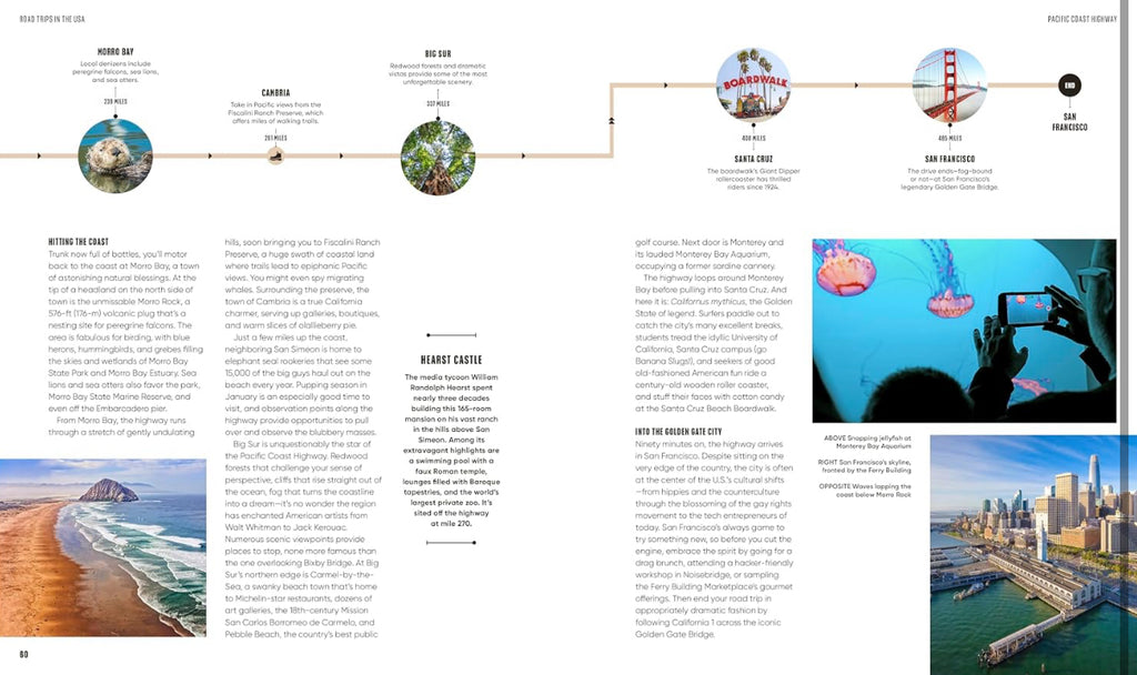 - Inspirational maps pinpointing all the key stops to make en route, such as classic landmarks and historic restaurants
