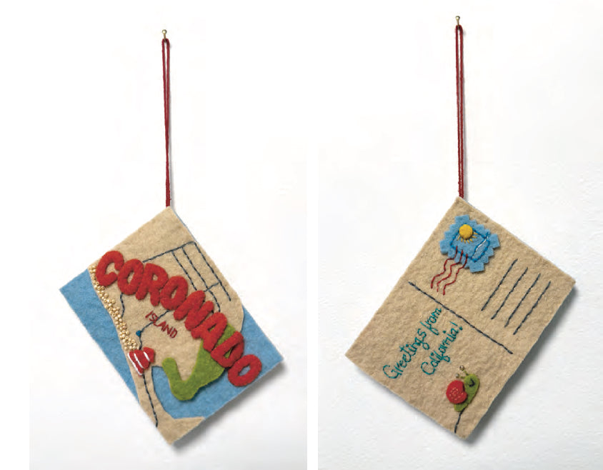 This handcrafted, felt postcard of Coroando, California is made with love by women artisans in India using all natural materials.