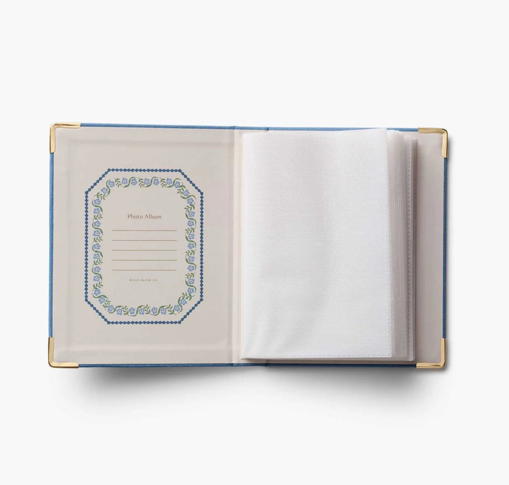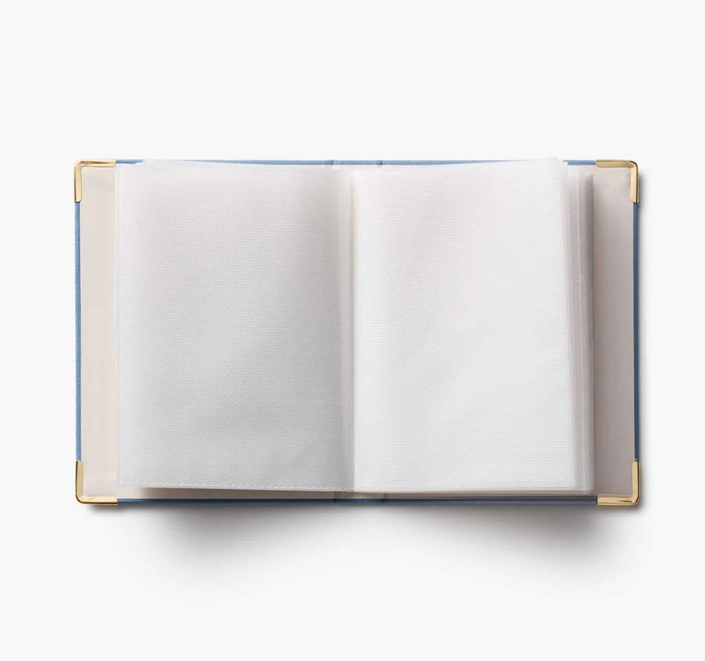 Stow 48 favorite photos in this keepsake album, with an embroidered bookcloth cover, gold foil detailing, and brass corner protectors.